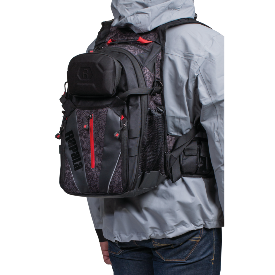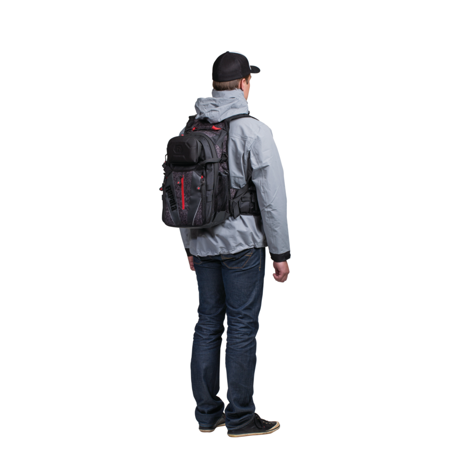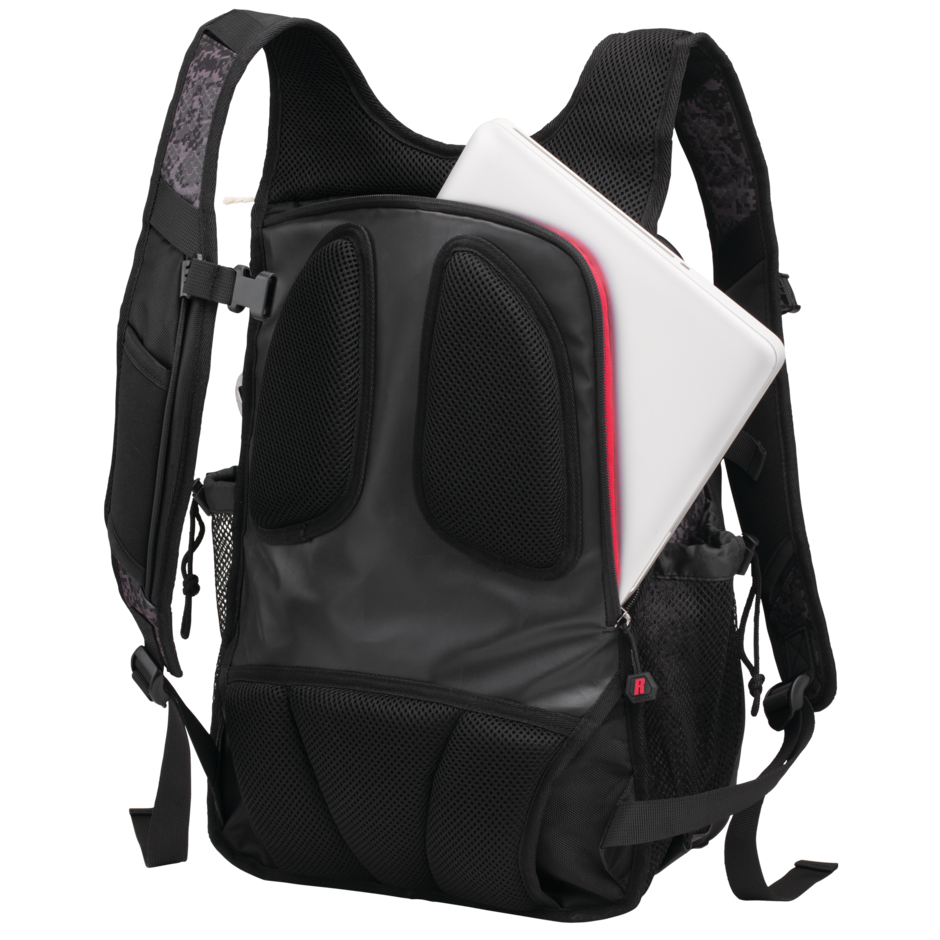 • Zippered padded back pocket fits 14” laptop or 2-liter hydration bladder
