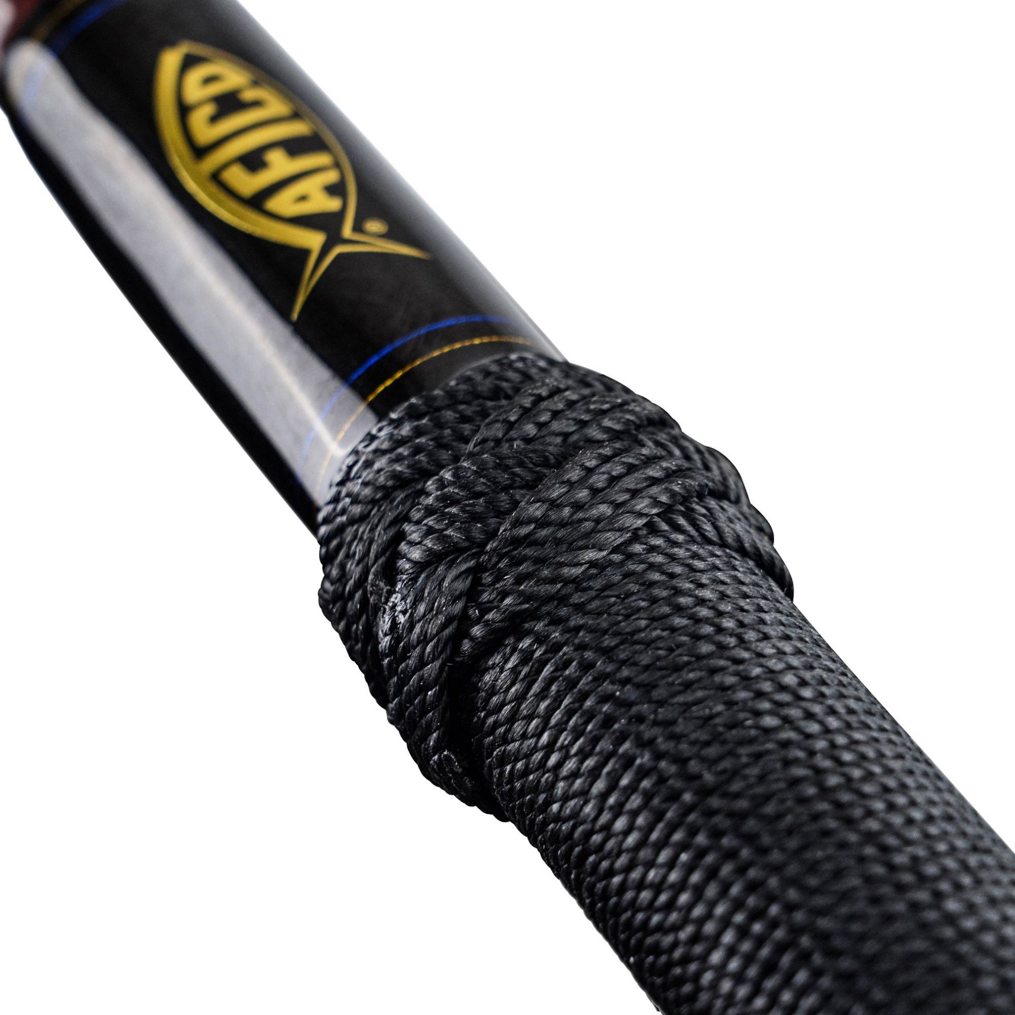 AFTCO Tapered Fiberglass Gaffs feature special thick-walled, super strong yet lightweight E-glass handle construction custom designed for extreme strength and rigidity. All our fiberglass handles are rolled on proprietary mandrels using specific tapers developed by AFTCO and are fitted in our factory with the same stainless steel hooks used on our aluminum gaffs. Featuring a rich dark brown epoxy finish with hand wrapped black and metallic gold trim, each gaff has a functional black nylon seine cord handle and Turk’s head. The 6 and 8 foot models float if dropped overboard.
