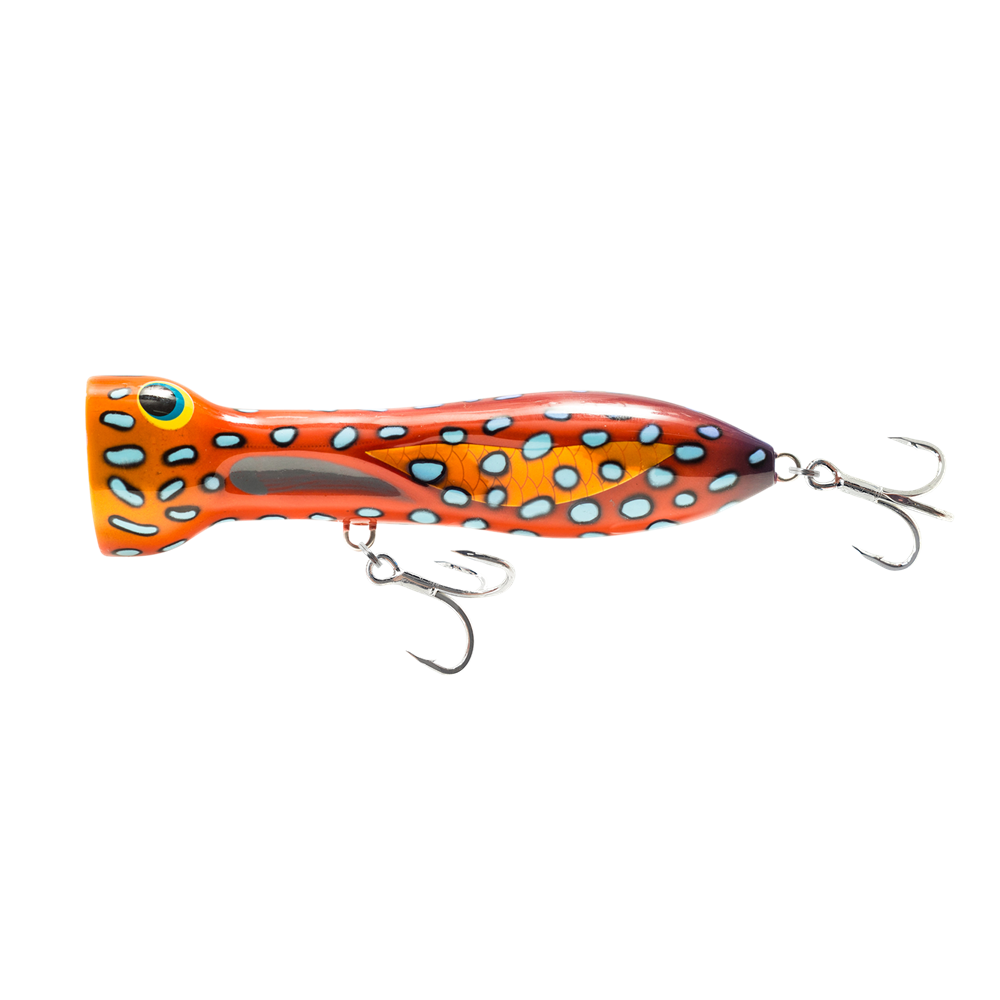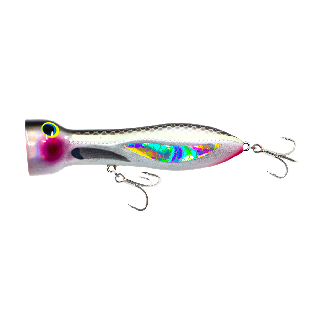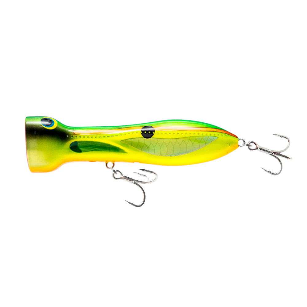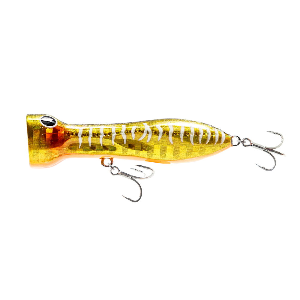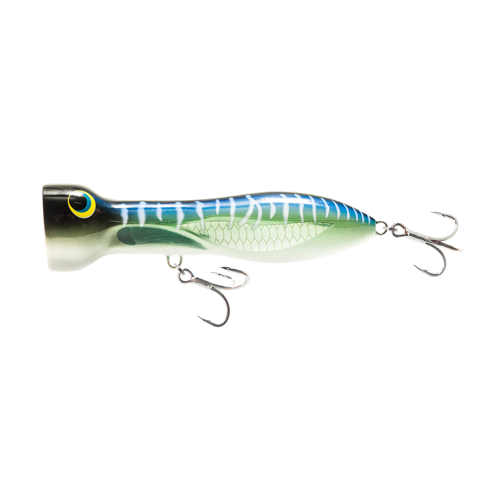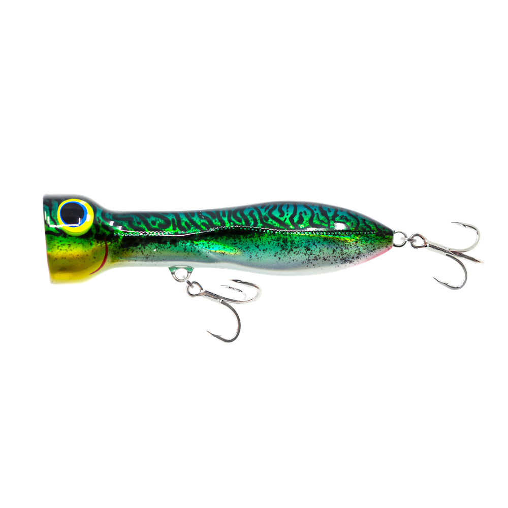 The CHUG NORRIS 95mm popper is super easy to pop, it hangs in the water and will not ‘pull out’ when popped. It has a unique “walk the dog” surface action which allows it to be worked super slow to entice a bite or faster with bigger pops. This popper is all about being easy to use, and it does not require much effort to get a big pop due to the unique body shape and hydrodynamic design. It can also be worked with subtle small pops and twitched across the surface. Whatever application, you will find the 95mm Chug Norris popper one of the easiest to use and most effective poppers available. Nomad Design lures are not only super tough and durable, but also feature highly detailed colours and most importantly unique and highly effective shapes and actions. Every Nomad Design lure has been crafted by decades of experience on the water to be tougher, last longer and to catch more fish.