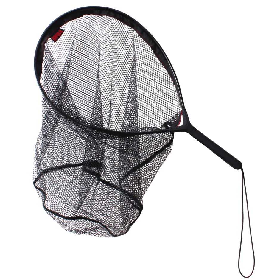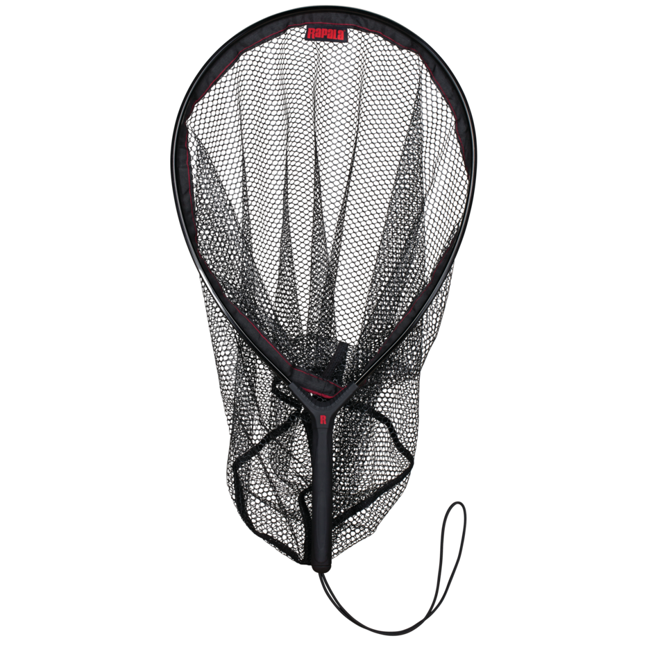Rapala Single Hand Net has a shorter handle. The soft grip handle also has an elastic lanyard. The rubberized mesh is safe for the fish.