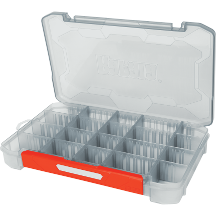 Store, organize, access – repeat. The Rapala Tackle Tray is designed for keeping your tackle protected and in perfect order with heavy- duty construction and smart design. The Tackle Tray features rigid, customisable dividers for accommodating various-sized baits and accessories while the Quick Latch System allows opening and closing the tray with an effortless single-hand motion. The stackable tray comes with integrated feet for vertical storage and re-writable labels for systematic storage. The UV-proof Rapala Tackle Tray is made from rigid plastic that’s resistant to both cold and heat, making sure your tackle is protected even in the most demanding conditions.