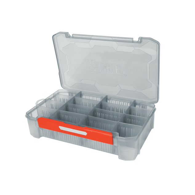 Store, organize, access – repeat. The Rapala Tackle Tray is designed for keeping your tackle protected and in perfect order with heavy- duty construction and smart design. The Tackle Tray features rigid, customisable dividers for accommodating various-sized baits and accessories while the Quick Latch System allows opening and closing the tray with an effortless single-hand motion. The stackable tray comes with integrated feet for vertical storage and re-writable labels for systematic storage. The UV-proof Rapala Tackle Tray is made from rigid plastic that’s resistant to both cold and heat, making sure your tackle is protected even in the most demanding conditions.
