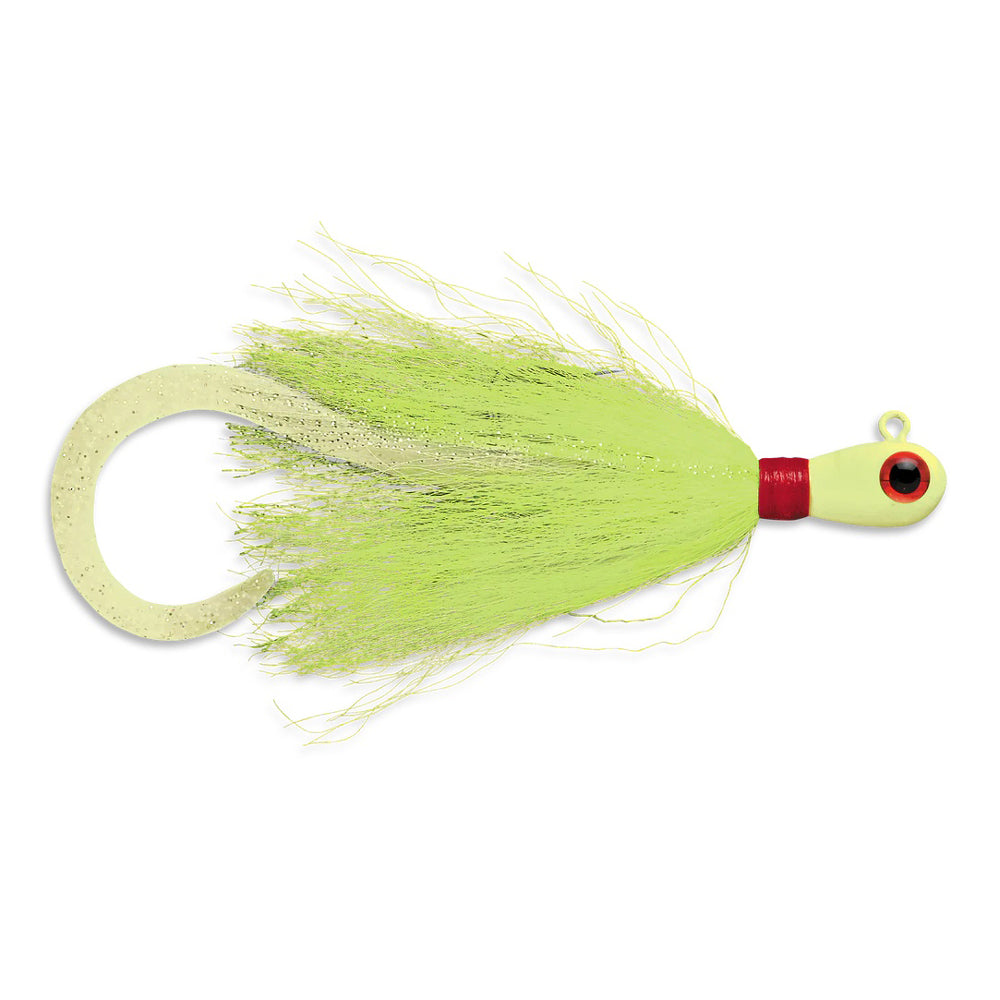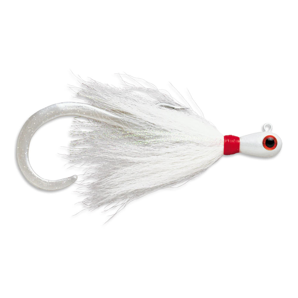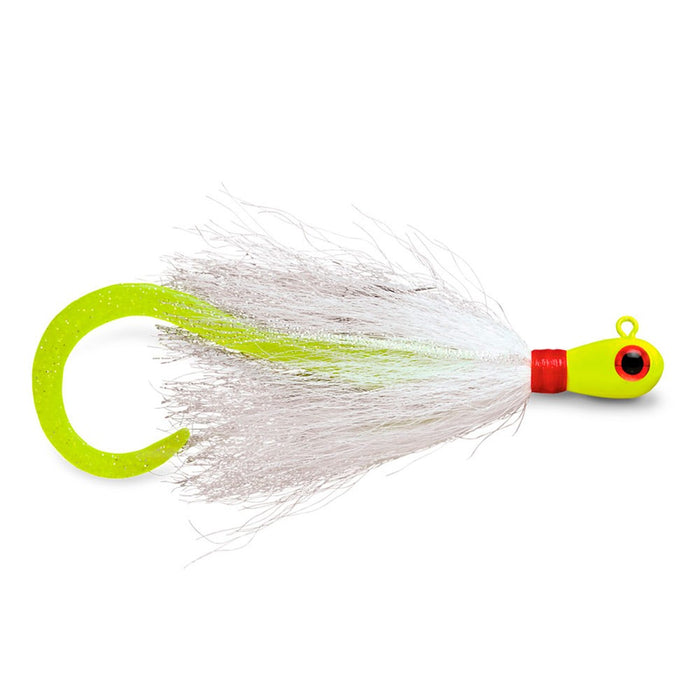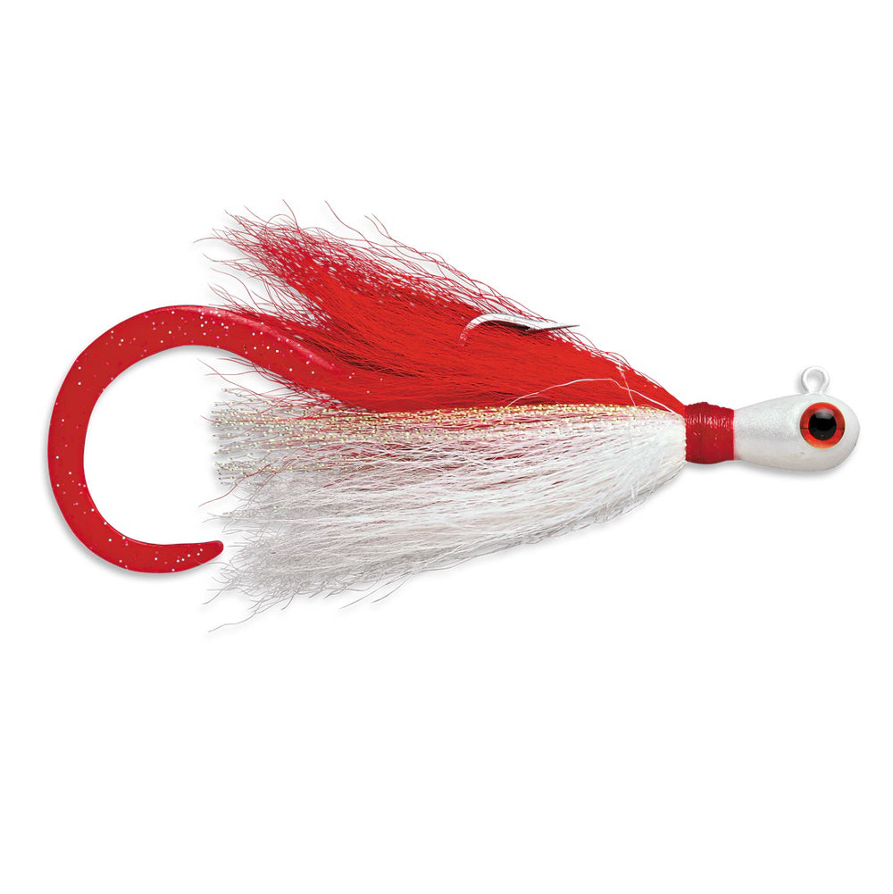 Vertical jigging has never been this exciting! With the Williamson Banjo Eye Bucktail Hair Jig, the action never stops, thanks to its specialized and balanced weight that exhibits perfect hydrodynamic movements during vertical jigging. To match it all off, it also features high-quality bound real deer hair for a smooth lifelike action, and a soft plastic ribbon curly tail that adds more movement to trigger more bites. Equipped with a bait retainer that keeps bait on the hook shank to give it the right presentation, it is also geared with a VMC Cone Cut Perma Steel hook, making it ready for any saltwater action.